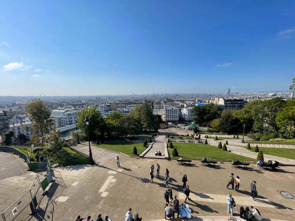 After breakfast, we took a short walk to Sacre Coeur and the Montmartre overlook. This was my first view of what Paris looked like, sprawling and full of buildings that were only a few stories high. I was not expecting the terrain to be so hilly.