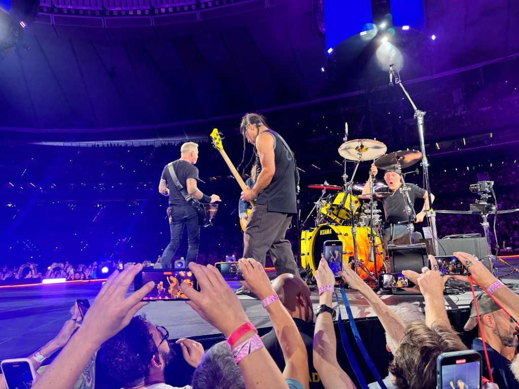 While “Shadows Follow” was playing, we walked through the crowd and found a spot near where we thought the drum kit would pop up. The crowd let us through because they were looking in the other direction towards James and Lars.