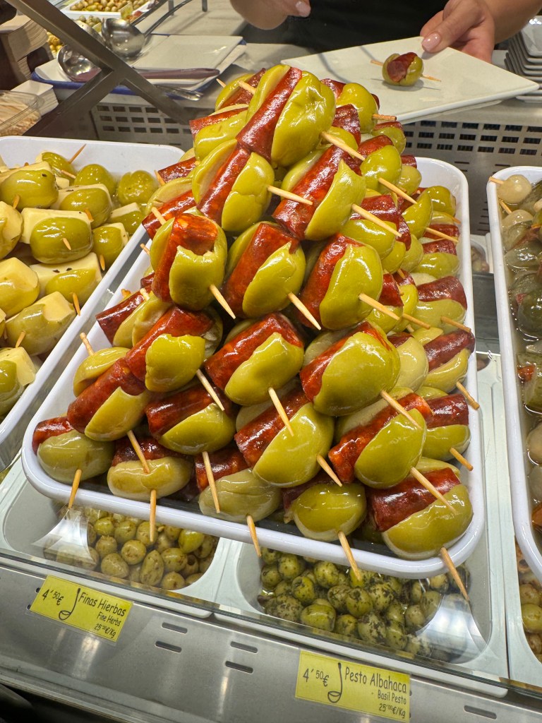The bike trip wrapped up and we needed something to eat so we wen to the Mercado de San Miguel. This place was very cool, it had an array of tapas selections. We sampled a bite at several tapas stands and that was good enough for lunch.