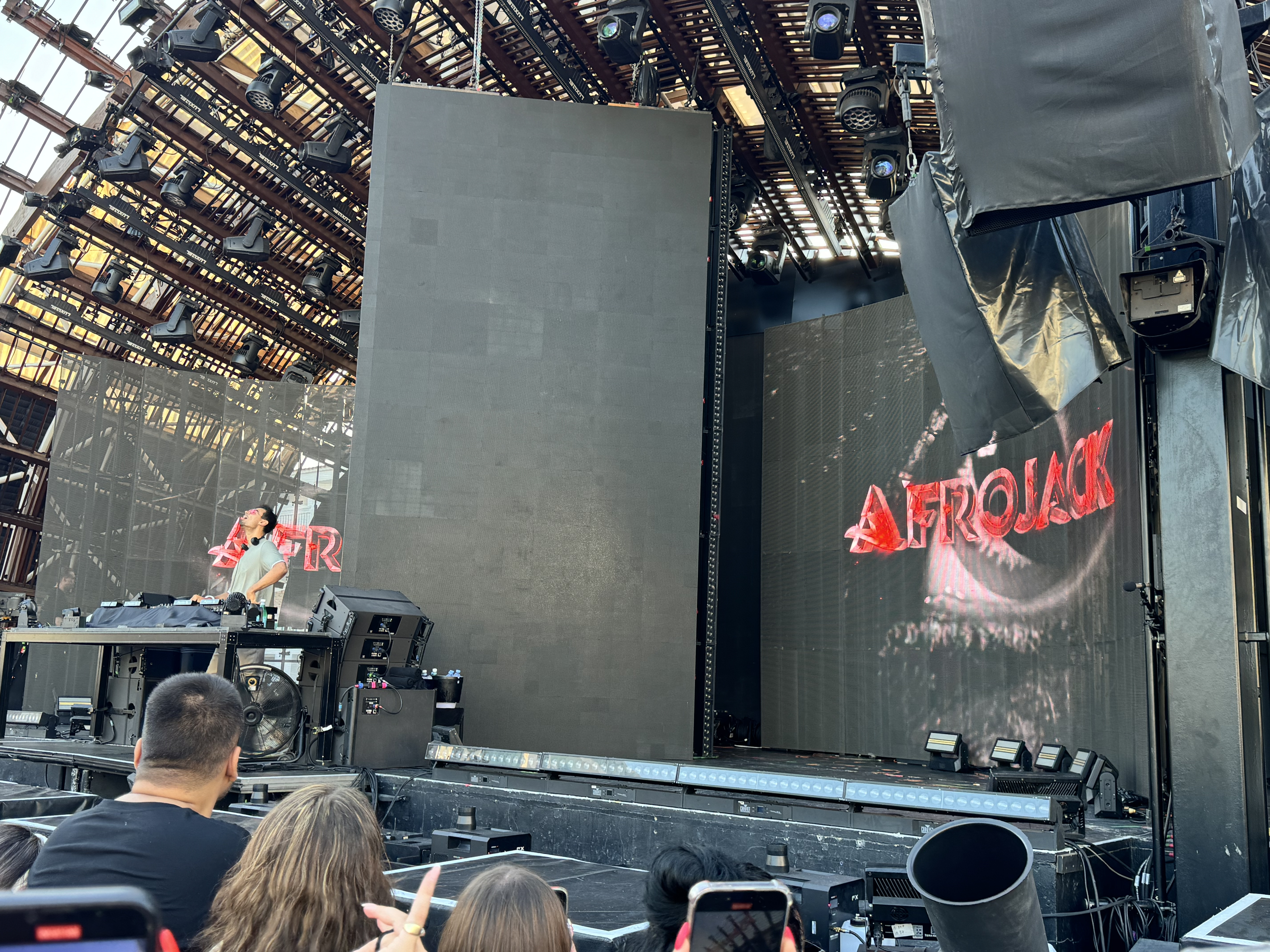 After a relaxing poolside afternoon, we got dressed for the evening and went to Ushuaïa. The openers went on at five, so we arrived early to check out the club. It was a spread-out outdoor venue with a pool in the middle. We walked around a bit, bought some insanely expensive drinks, and found a spot in front of the guardrail in time to get a good view of Afrojack.