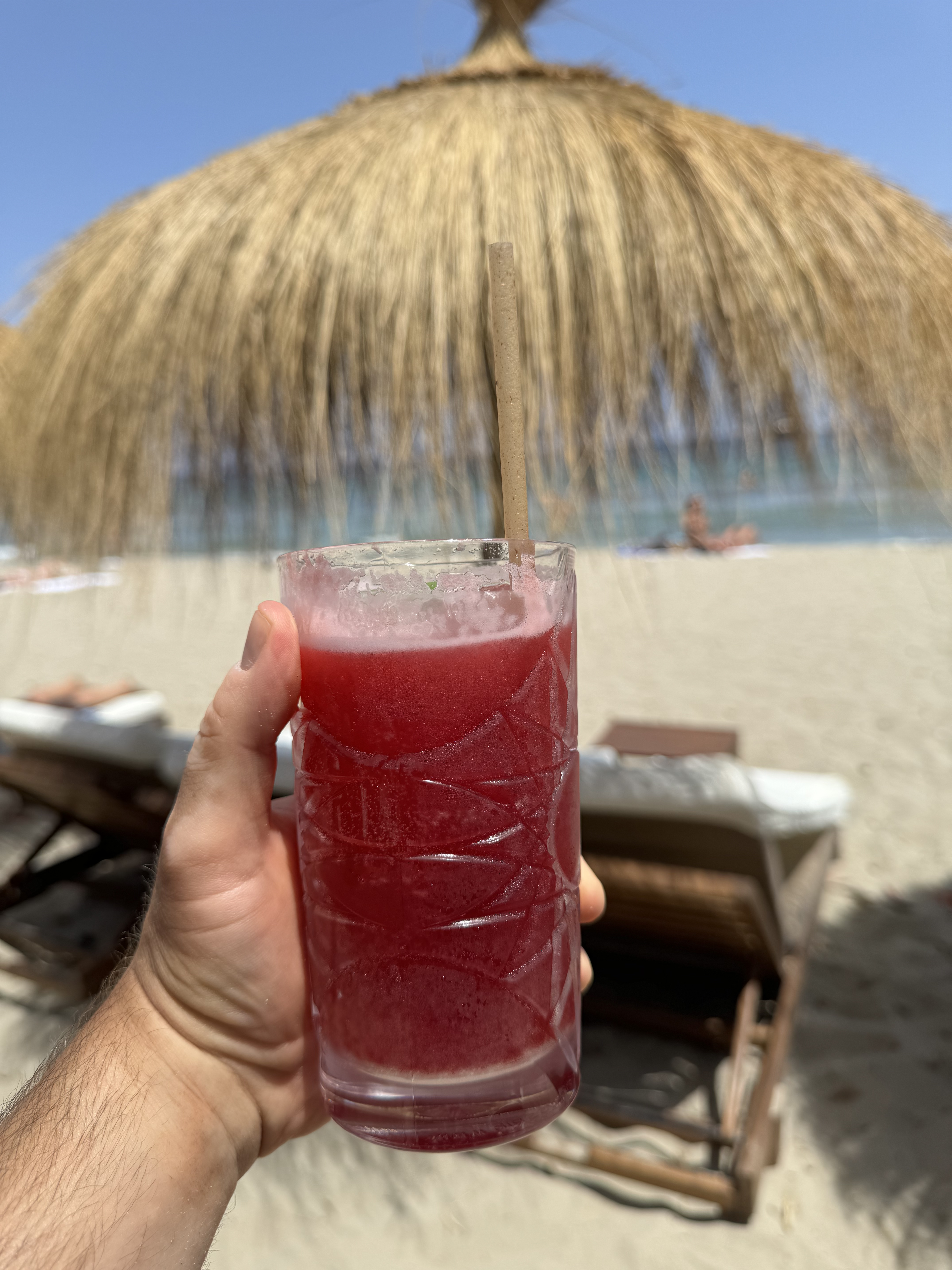 Once again, we were in search of relaxation in Ibiza, so we headed south to Experimental Beach. It was a restaurant on the beach outside of town. We grabbed a few day beds and ordered some cocktails. The view was nice, but the beach was full of rocks so getting in and out of the water was an ordeal.