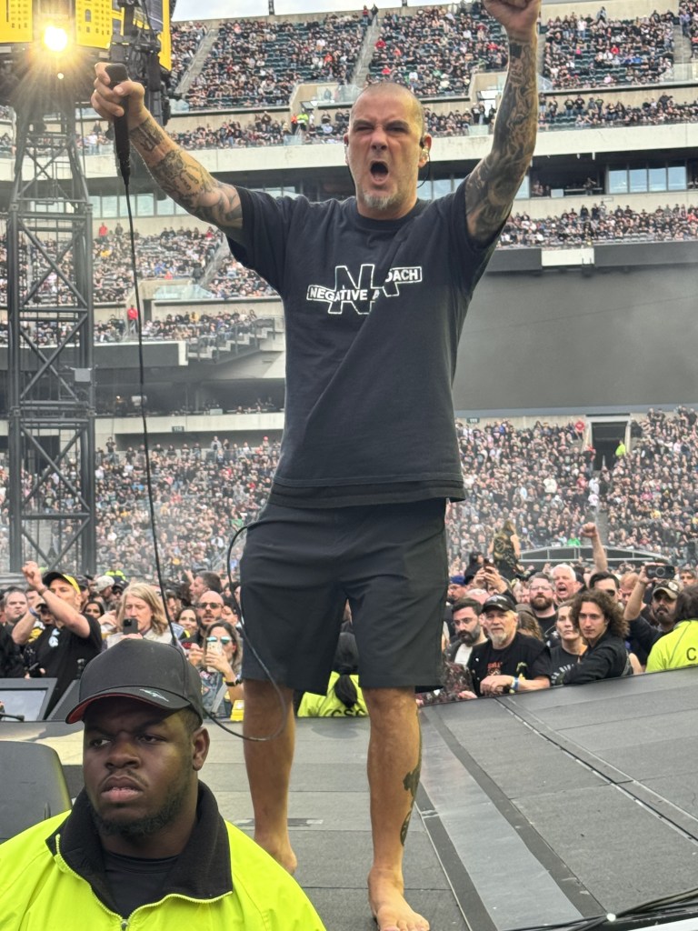 We met up and took an Uber to the stadium. Pooch, Lefty, and Joe wanted to grab some beers at Victory Brewing at the Xfinity Center entertainment complex outside the stadium. I wanted to catch Suicidal Tendencies, the first opening act so I went in early. I said hi to Sue, Ned, and Colleen who were on the rail already.