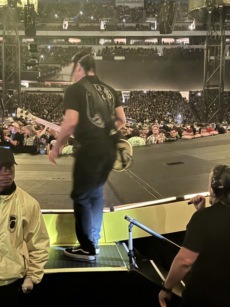 We were on the side of the stage where the final two drumkits would pop up. We stood in front of Robert Trujillo’s rig and bass tech, so he spent a lot of time in front of us between songs.