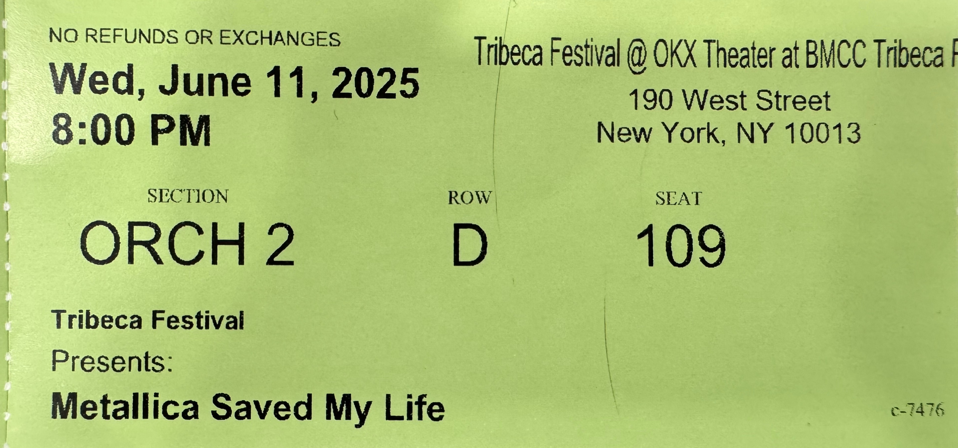 I got a note from their emailer a few months ago about a world premiere for “Metallica Saved My Life” at the Tribeca Film Festival in Manhattan on June 12, 2025. I work in downtown Manhattan not too far from the theater and it just so happens that I was not ironically planning to visit a city the band was playing in that day (I wasn’t set to leave for Houston until Friday). The email teased that the band might be there.